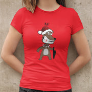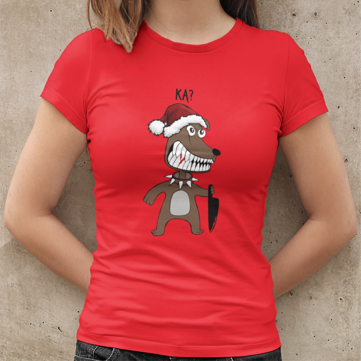 Raudoni kalėdiniai moteriški marškinėliai "Ką šuniukas Kalėdos"