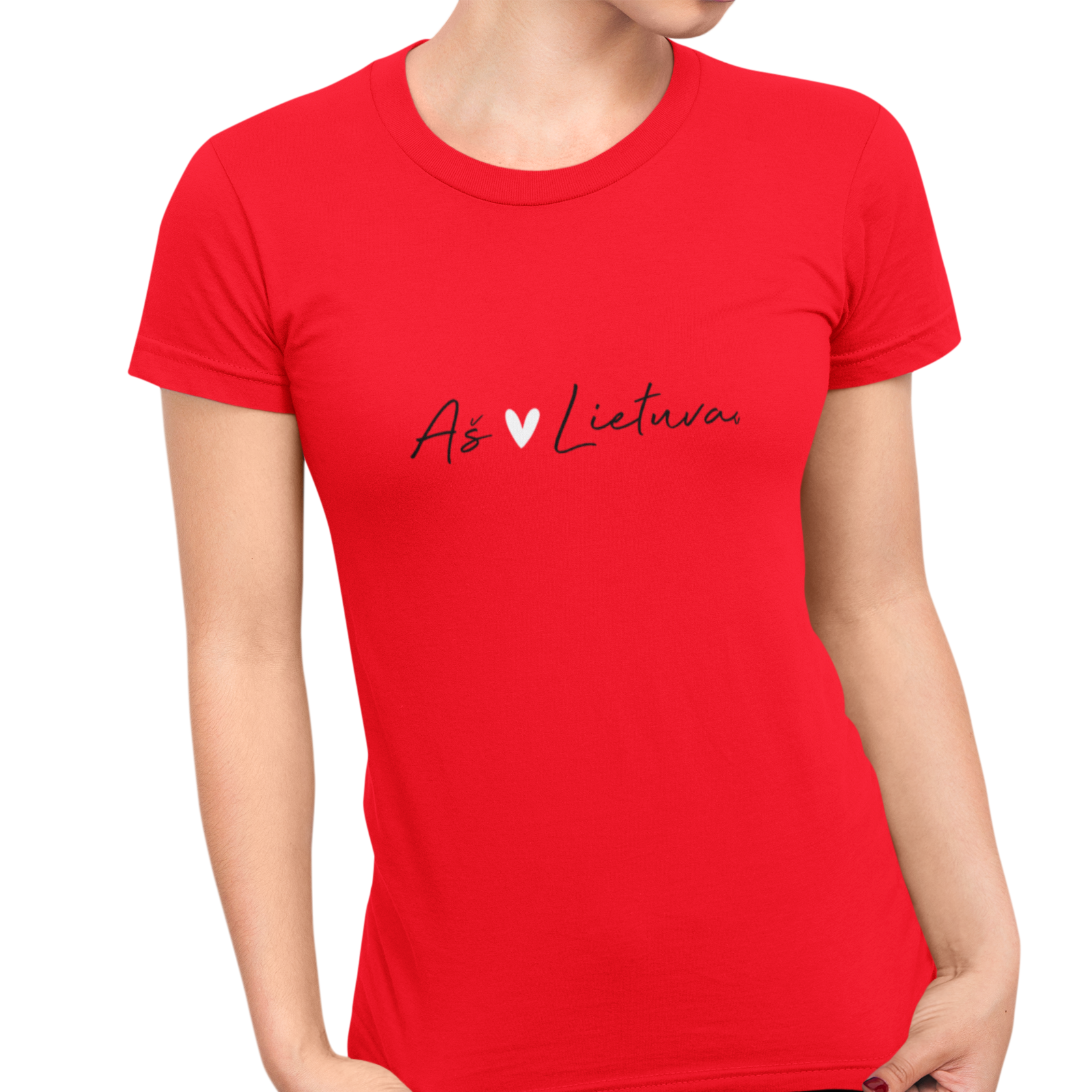 Raudoni moteriški marškinėliai "Meilė Lietuvai"