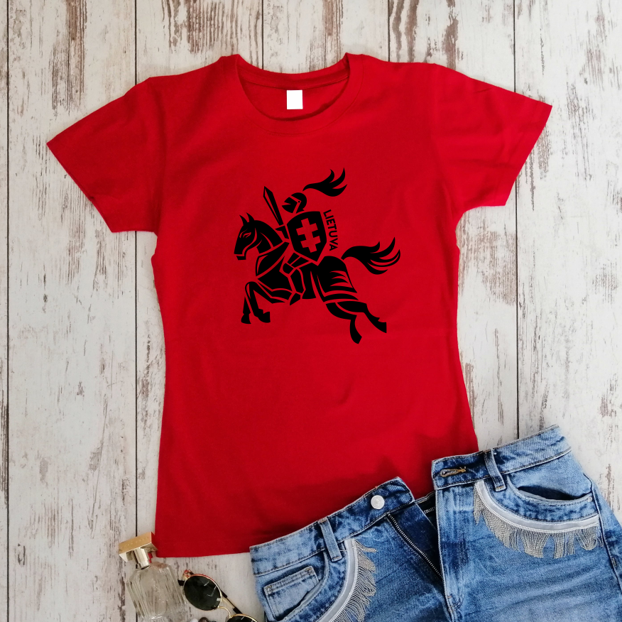Raudoni moteriški marškinėliai "Vienspalvis Vytis"