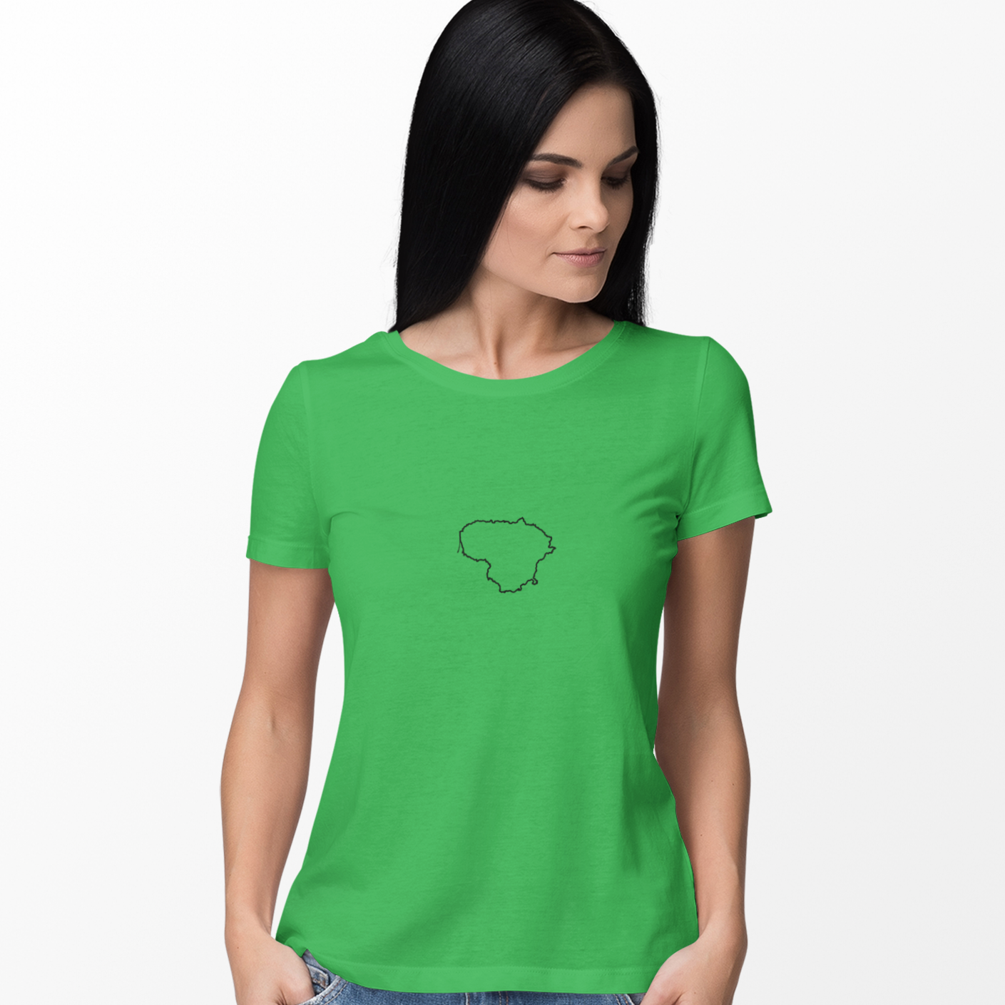 Žali moteriški marškinėliai "Lietuvos kontūrai"