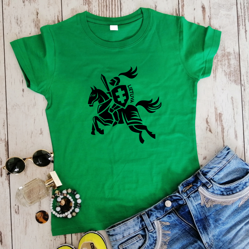 Žali moteriški marškinėliai "Vienspalvis Vytis"