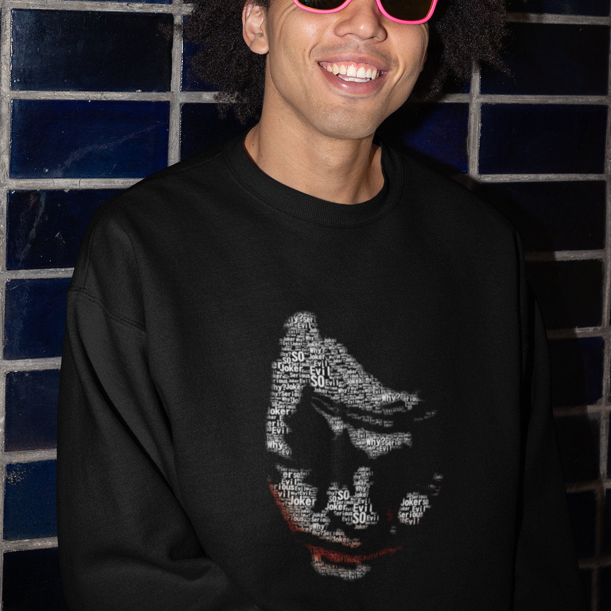 Juodas UNISEX džemperis be gobtuvo "Džokerio žodžiai"