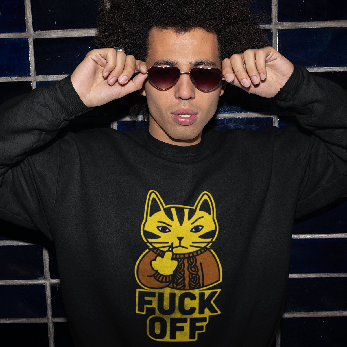 Juodas UNISEX džemperis be gobtuvo "Fuck off"