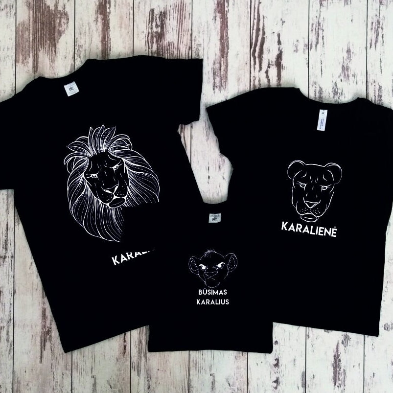 Medvilniniai marškinėliai su linksmais ir nuotaikingais piešinėliais visai šeimai "Karalių šeima". Nustebinkite artimus žmones, papuošdami juos išskirtinio dizaino marškinėliais!