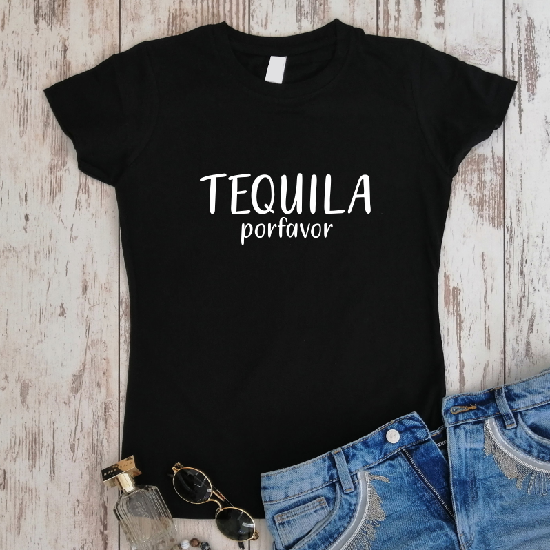 Juodi moteriški medvilniniai marškinėliai "Tequila porfavor"